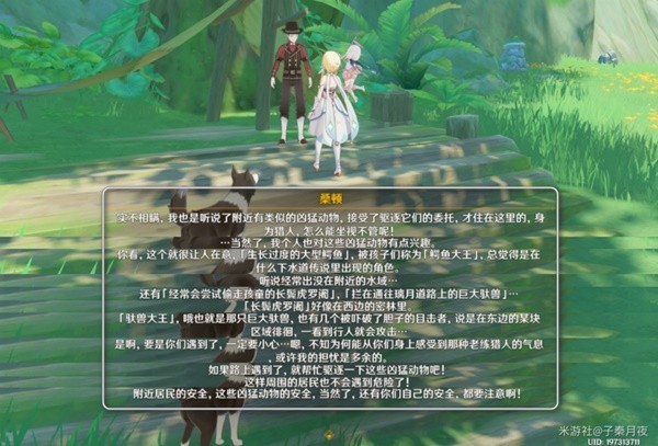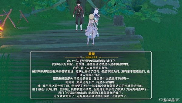 3.对话中得知他是来自枫丹的动物防治专家-桑顿 ,长鬓虎罗阇;对话结束 ,